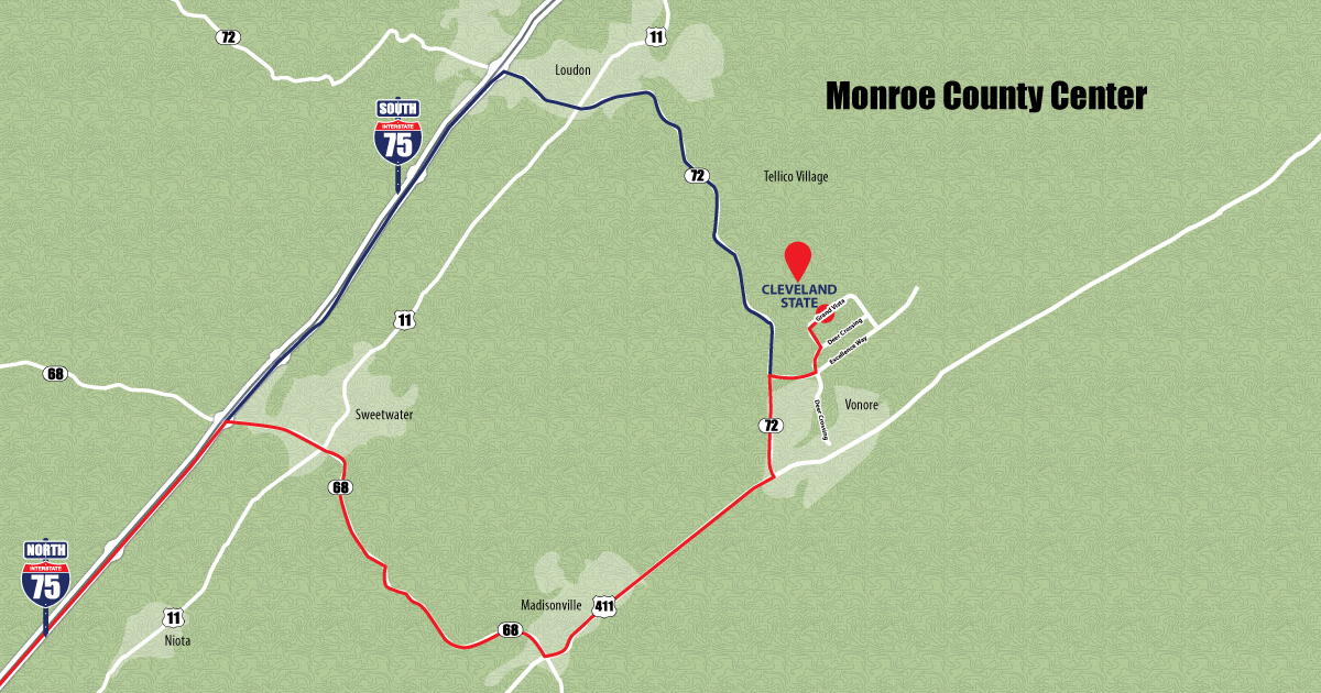Click here  to view a map to the McMinn Higher Education Center.
